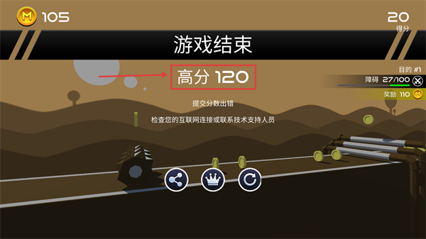 4、游戏结束后记录【高分-120】,后续挑战更高分数的目标。
