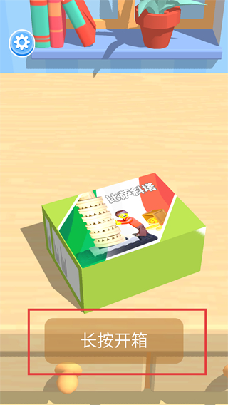 1、长按开箱【比萨斜塔】绿色箱子按钮,解锁积木包装,开启搭建前置流程。