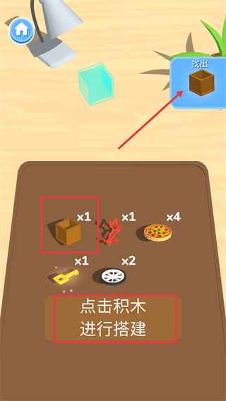 3、搭建时按照找出,选中目标后,点击【积木-进行搭建】组装部件。