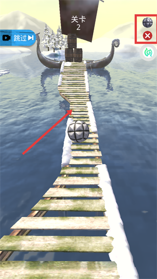 2、在【关卡】的桥面移动时,避开积雪区域保持平衡,右上角【球】图标显示你的剩余生命。
