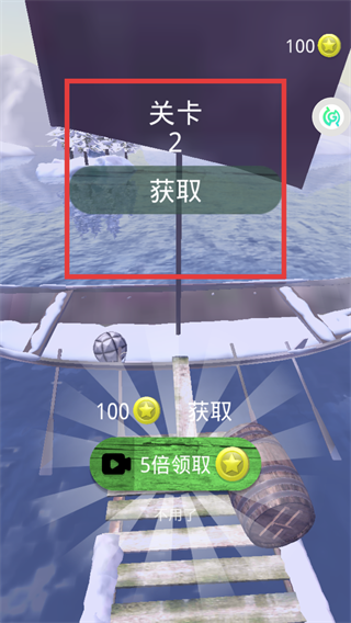 4、通关【关卡】后,点击【获取】领取金币。