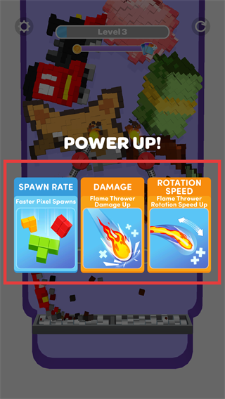 3、拆解中可选择【SPAWN-RATE】【DAMAGE】等增益,提升拆除效率,推进【Level-3】进度条。