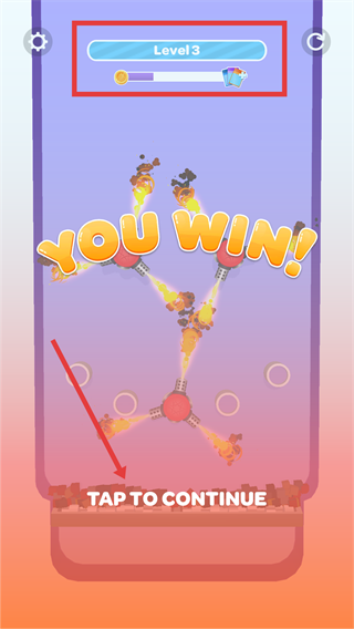 4、通关【Level-3】后点击【TAP-TO-CONTINUE】,完成结算并进入下一关,继续体验拆除玩法。