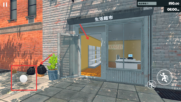1、操作左侧移动控制按钮,控制角色进入超市。