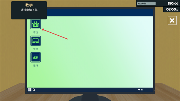 3、在电脑界面中,选择“市场”选项,进入商品采购模块。