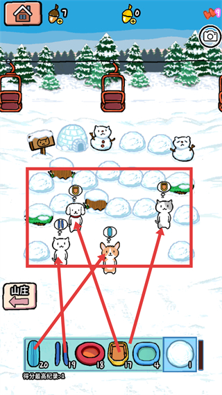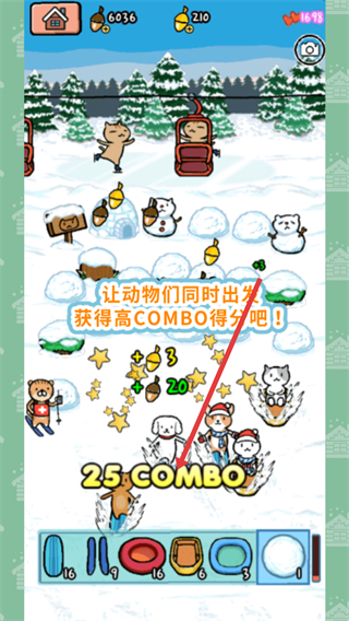 1、在【动物滑雪场】中给游客配备道具,让动物们同时出发,并获得高分。