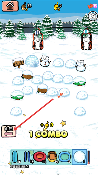 3、完成操作后触发【1COMBO】获取奖励,点击【山庄】按钮可切换至其他场景。