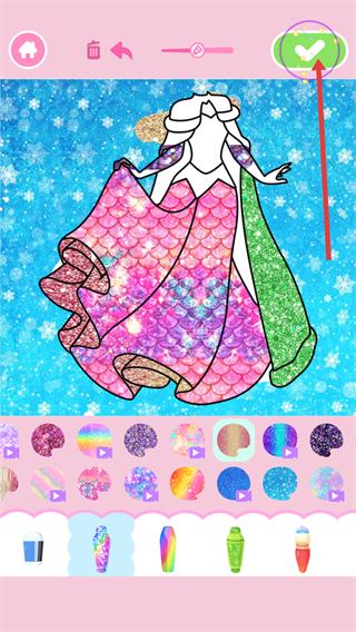2、支持对适合的颜料进行智能搭配,玩家无需花费大量时间琢磨配色,一键即可开启全新视觉体验,让裙子涂色效果更协调美观。