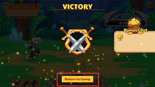 3、战斗胜利后,点击【Return-to-Camp】按钮返回营地。