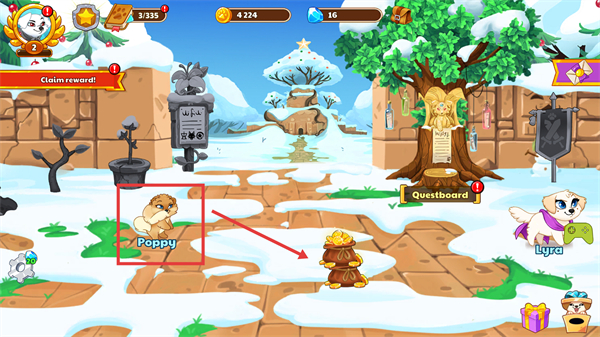 4、回到营地界面,点击红色框内【Poppy】角色,跳出金币点击获取。