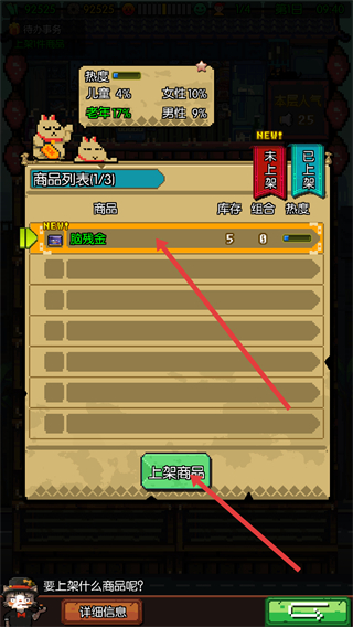 2、注重经营管理,需考虑客人需求,合理摆放商品方便客人寻找以提高销量,结合市场行情制定合理价格,赚取金币用于升级小店。