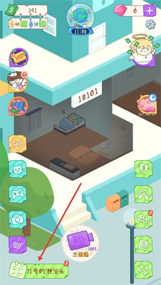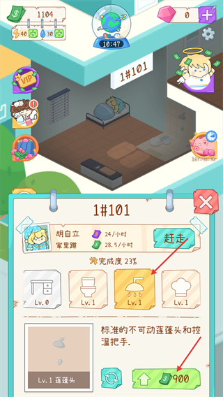2、消耗900金币升级【莲蓬头】,提升房间设施等级。