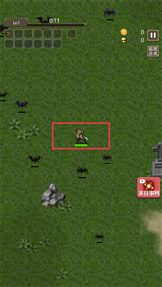 3、进入关卡后,操控选定的英雄角色,在场景中自动攻击怪物,积累资源与等级提升。
