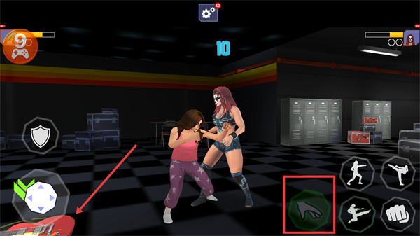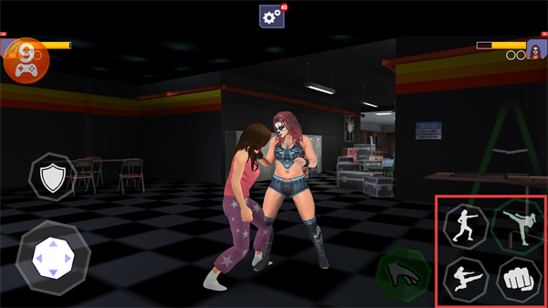 2、借助虚拟摇杆掌控角色移动方向,搭配攻击防御按钮施展招式,按住攻击键加方向键可释放强力摔法。