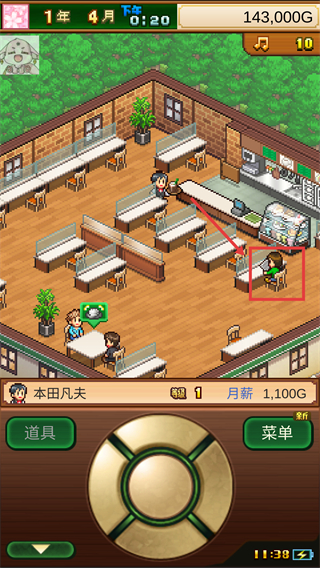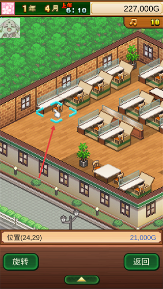 4、调整店铺桌椅布局并优化摆放角度,提升空间利用率与顾客体验,接待顾客完成订单获取金币与经验,稳步提升店铺等级。