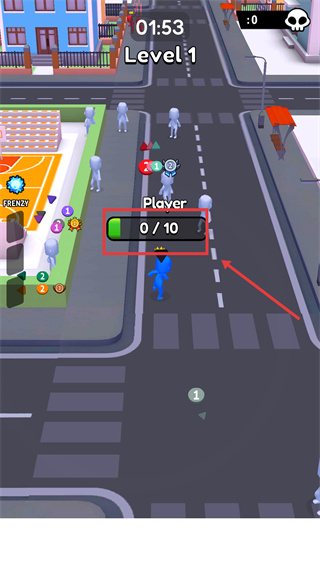 1、在【Level-1】中,需快速收集路人填充【0/10】进度条。