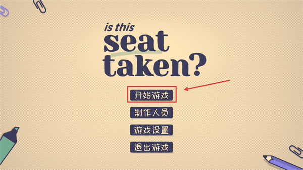 1、在游戏初始界面,点击【开始游戏】按钮进入关卡,可先了解【is-this-seat-taken?】的关卡主题。