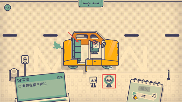 2、处理【约尔迪】的需求时,将其对应角色移至红色箭头指向的座位,匹配“想在窗户旁边”的偏好。