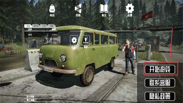 1、进入界面后点击【开始游戏】启动关卡,同时可通过【物品】栏查看初始携带的【撬棍-0.5KG】道具。
