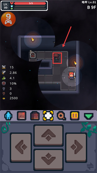 4、在地牢【B9F】区域,优先与场景中的怪物互动,击败后可获取地牢资源,推进关卡进度。