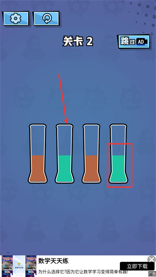 2、关卡中先将同色液体(如绿色液体)归到同一试管,整理出纯色试管,推进分类进度。