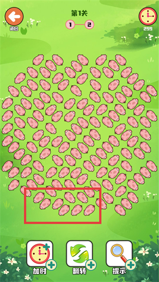 1、在第1关场景中,选中区域内的相同【小猪】,触发该区域内小猪的消除操作。