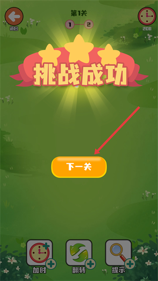 4、完成消除目标后界面显示【挑战成功】,点击【下一关】按钮进入后续关卡。
