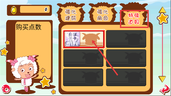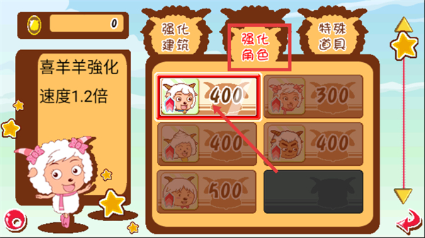 3、切换至商店的【强化角色】分类,可购买喜羊羊强化类道具,使用后能提升对应角色的速度等能力。