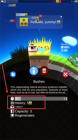 3、【Bushes】是可再生资源建筑,2秒产出1个redballs,提升人口需依赖其产出,可通过升级增加效率。