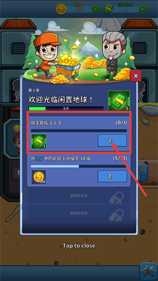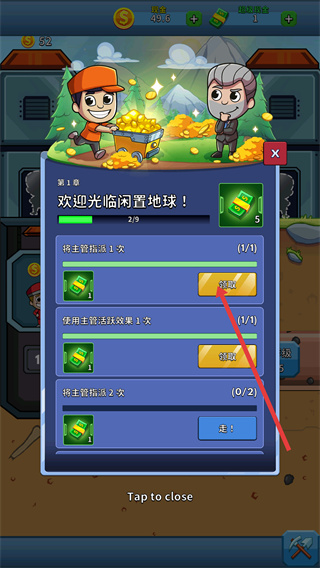 1、完成【将主管指派1次】任务,点击对应按钮推进,可获取奖励提升矿山运营效率。