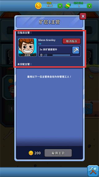 2、【矿层1主管】界面中,已指派【GlennGravley】,可以加速矿场开采效果。