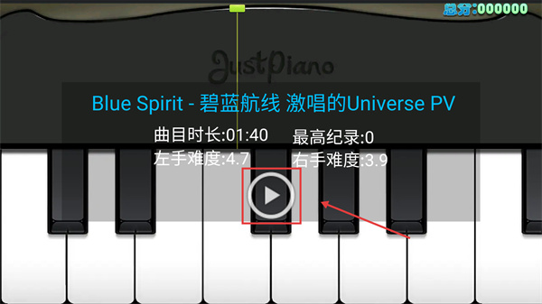 2、选定【Blue-Spirit-碧蓝航线-激唱的Universe-PV】曲目后,点击播放按钮开始演奏,注意曲目难度参数。