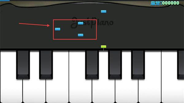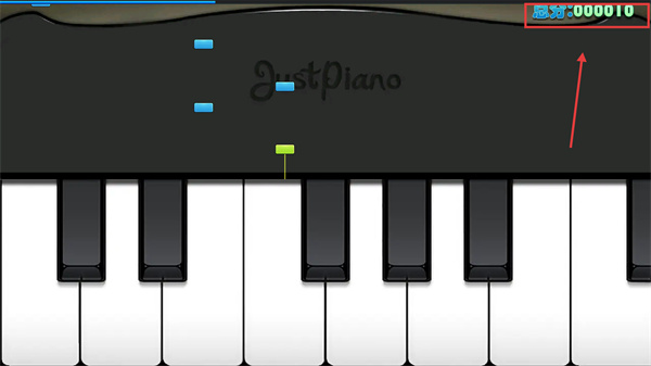 3、演奏时跟随下落的蓝色按键提示,对应按下钢琴键,完成节奏匹配以推进演奏流程。