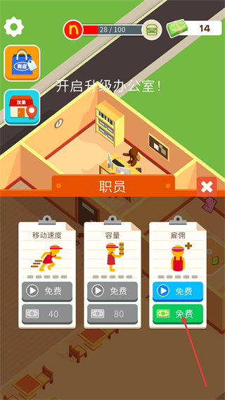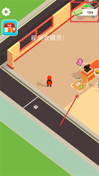 2、消耗资金点击对应区域,完成【雇佣收银员!】的操作,增加店员协助处理收银事务,提升运营效率。