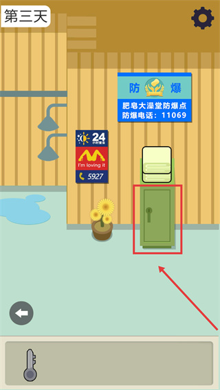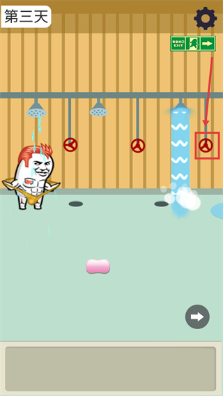 2、在【第三天】关卡中,点击带【禁止标志】的淋浴装置,可触发场景变化,推进解谜进度。