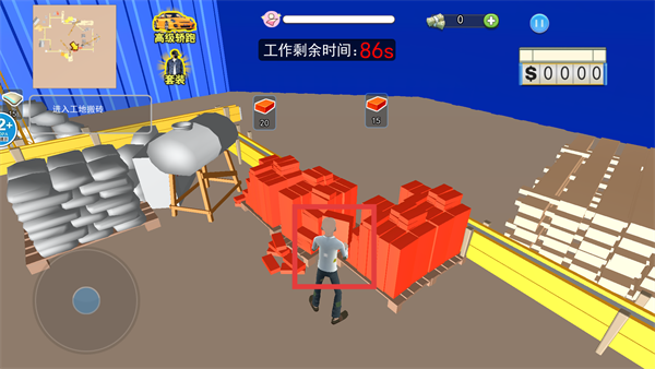 4、搬运砖块时,将其送至指定的白色框区域,完成该操作可积累薪资。