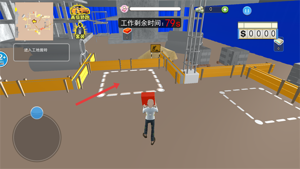 3、工作界面会显示【工作剩余时间】,找到场地内的砖块堆,靠近后可进行搬运操作,需留意时间进度。