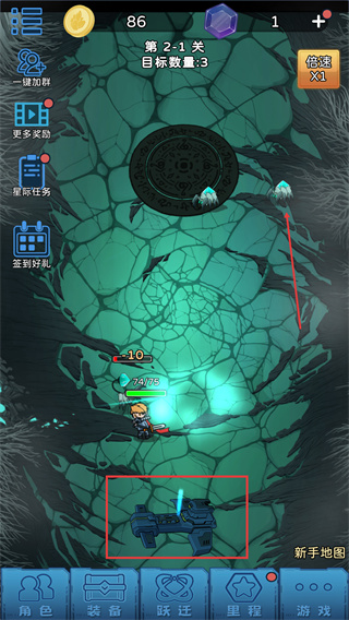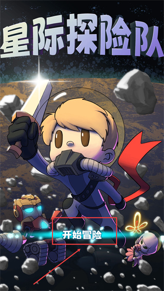 1、进入游戏后点击【开始冒险】,即可开启【星际探险队】的关卡挑战,进入冒险流程推进游戏进度。