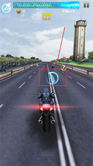 2、赛道中遇到【蓝色道具】需及时拾取,它可补充【N2O】加速资源,助力提升车速超越对手。