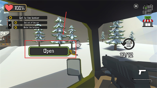 1、在雪地场景中点击【Open】按钮,可交互场景内物品,同步推进【Get-to-the-bunker】等主线任务进度。