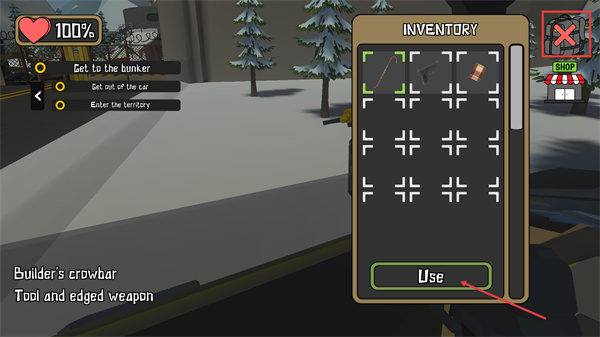 2、打开【INVENTORY】界面,选中【Builder's-crowbar】后点击【Use】,可启用该工具完成互动操作。