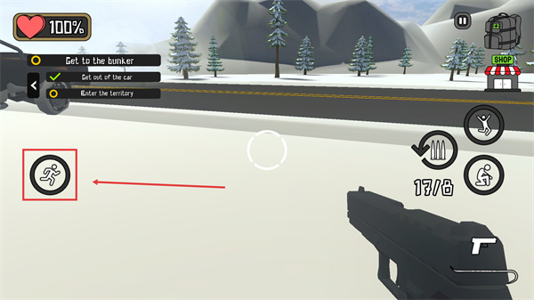 3、点击左侧【跑步图标】执行下车动作,完成【Get-out-of-the-car】任务,解锁后续场景交互权限。