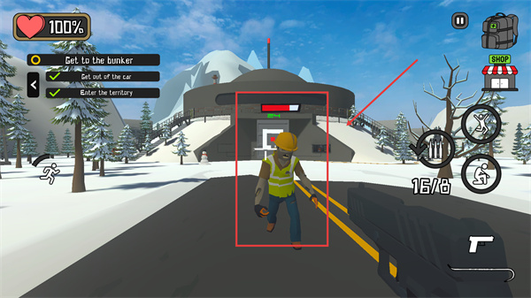 4、遭遇穿反光背心的敌人时,需使用武器攻击,同时向【掩体建筑】移动,完成【Enter-the-territory】任务。