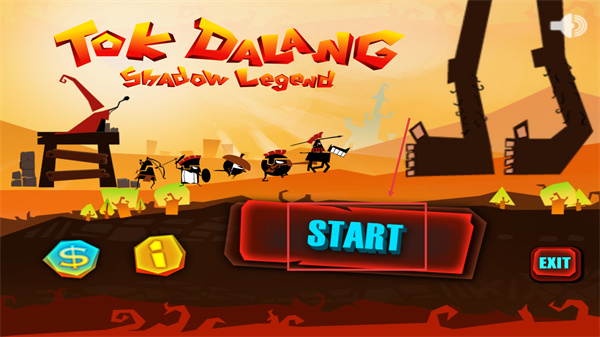 1、进入【Tok-Dalang-Shadow-Legend】界面后,点击【START】按钮即可开启游戏,界面还有【EXIT】按钮可退出。
