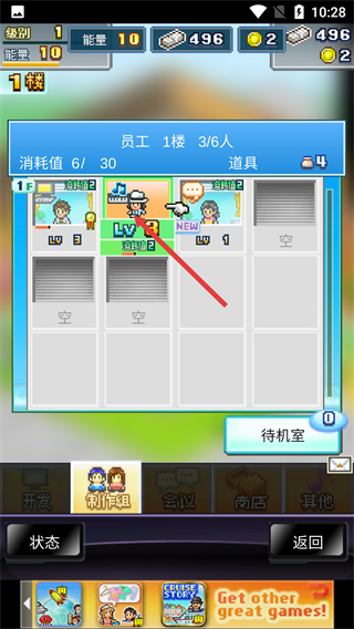 1、点击界面底部的【制作组】按钮,进入对应功能界面,可查看当前员工配置与项目进展情况。