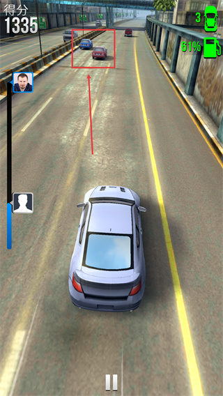 2、留意道路上的车辆,像当前界面里的红色框选车辆,规避它们能维持行驶。