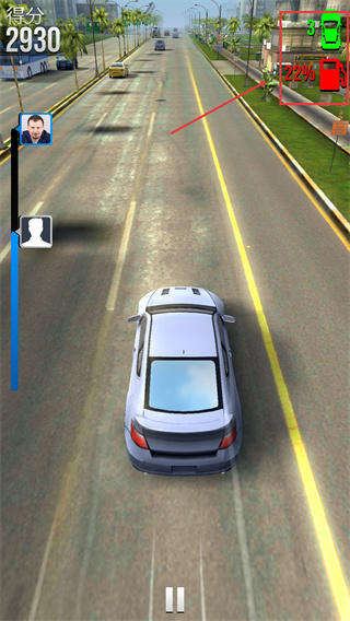 3、通过左右点击屏幕控制赛车偏移,需留意油量状态,跟随油车可补充燃油,避开后方警车碰撞避免被抓捕。