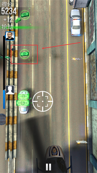 4、出现【抢劫】标识时,可以收集金币,用以购买和升级车辆。