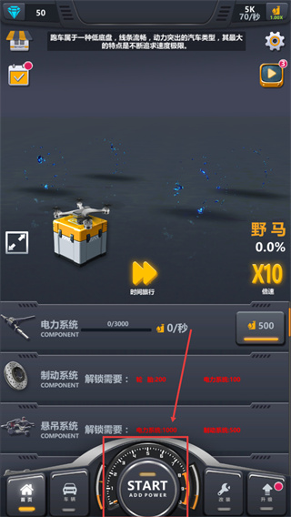 1、点击【START-ADD-POWER】可获取资源,解锁【电力系统-COMPONENT】等部件需满足对应条件。