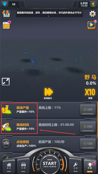 2、升级【离线产量】可额外+10%产量,升级【离线时间】能延长离线时长上限。